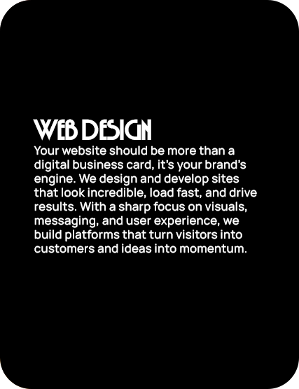 Black background with white text about web design, emphasizing the importance of visual appeal, speed, and user experience to convert visitors into customers.