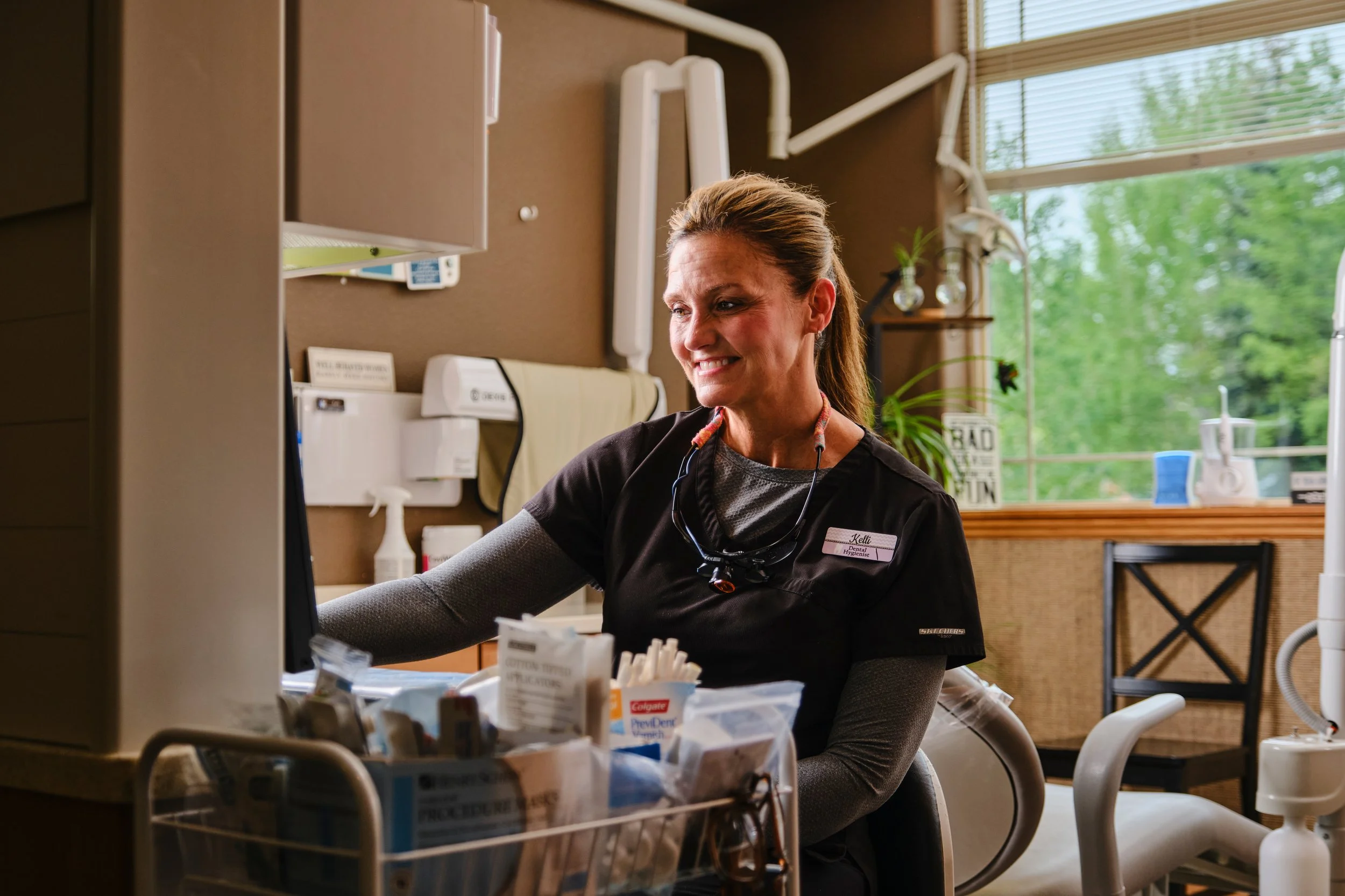 A family in a modern kitchen with white cabinets, two black pendant lights, and a marble countertop. A woman with blonde hair is cooking, holding a knife near a bowl. A man with dark curly hair and a floral shirt is holding a bowl and smiling at her. A young boy with brown hair in a blue shirt is watching from the counter.