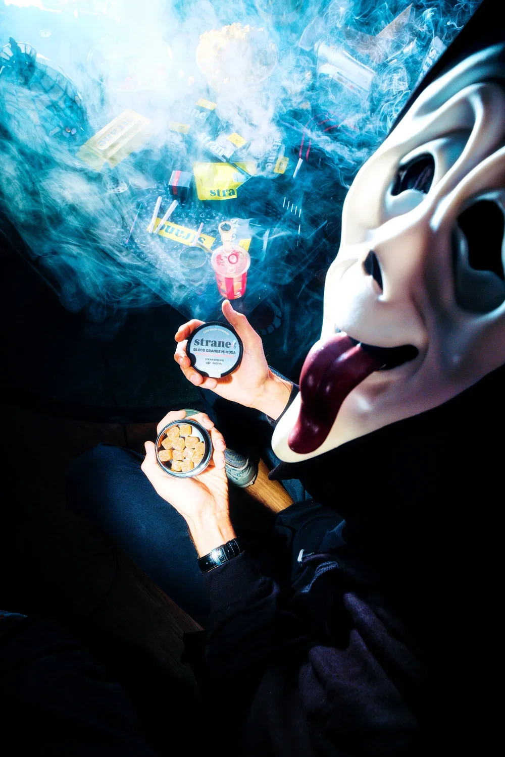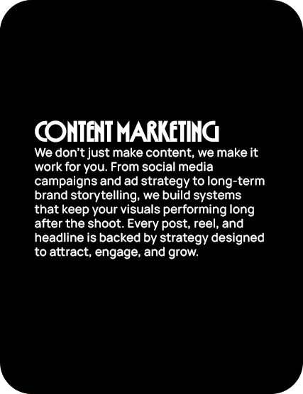 Black background with white text about content marketing strategy focusing on social media campaigns, ad strategy, brand storytelling, and content performance.