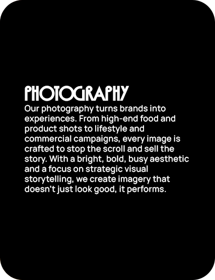 Black background with white text describing video production services, focusing on creative storytelling and emotional connection.